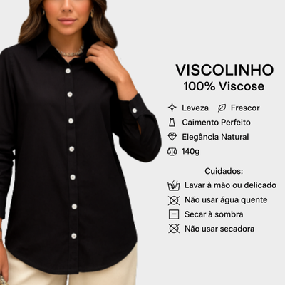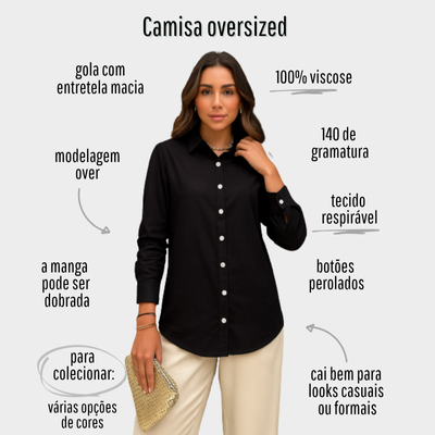 Camisa oversized em viscolinho, com modelagem ampla e caimento leve que une estilo e conforto. Uma peça versátil e elegante, perfeita para transitar entre o look formal e o casual, podendo ser usada com calças, shorts ou até como saída de praia. O tecido em viscolinho 100% natural proporciona frescor e um toque sofisticado, ideal para todas as ocasiões.