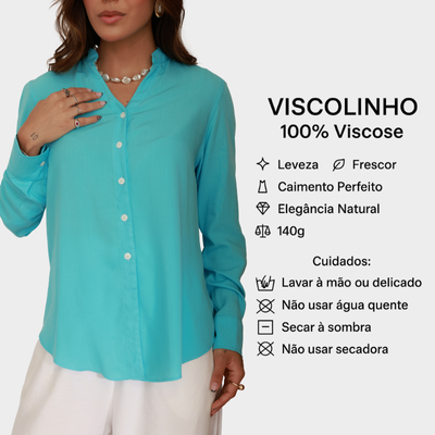 Camisa em viscolinho leve e fresco, com gola V que valoriza o colo e traz um toque de sofisticação natural. Confeccionada em cores em alta da temporada, é uma peça versátil e elegante, perfeita para compor looks do dia a dia, do trabalho ou de momentos casuais com estilo. O viscolinho garante conforto, caimento fluido e um visual sempre impecável.