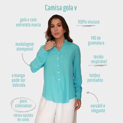 CAMISA FEMININA GOLA V EM VISCOLINHO TULUM
