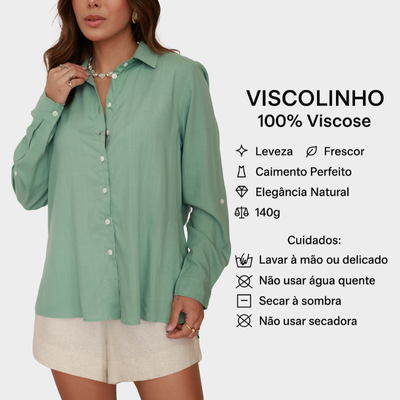 CAMISA FEMININA OVERSIZED GOLA TRADICIONAL EM VISCOLINHO AQUAMARINE