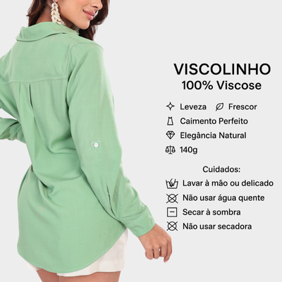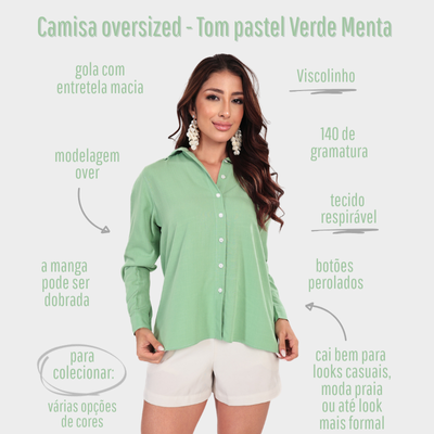 Camisa oversized em viscolinho, em tom pastel que está super em alta para o verão 2026, com modelagem ampla e caimento leve que une estilo e conforto. Uma peça versátil e elegante, perfeita para transitar entre o look formal e o casual, podendo ser usada com calças, shorts ou até como saída de praia. O tecido em viscolinho 100% natural proporciona frescor e um toque sofisticado, ideal para todas as ocasiões.