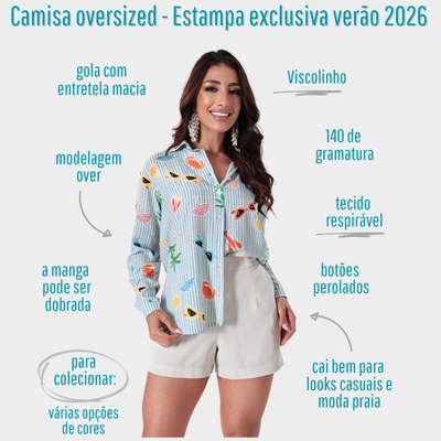 Confeccionada em tecido leve e confortável, possui modelagem soltinha, botões frontais e caimento perfeito para criar produções elegantes e descomplicadas do dia ao pôr do sol.