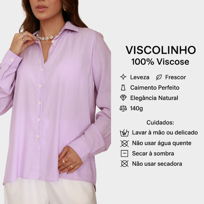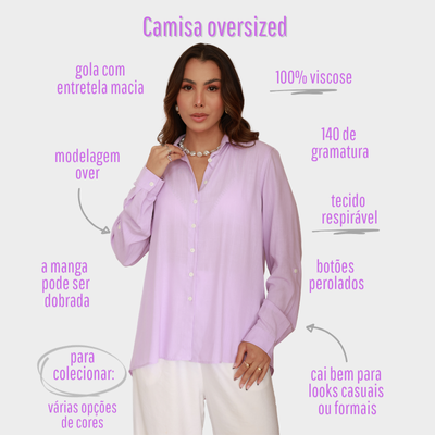CAMISA FEMININA OVERSIZED GOLA TRADICIONAL EM VISCOLINHO LUPINE