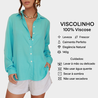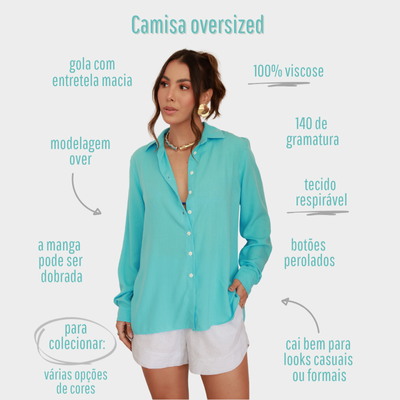 CAMISA FEMININA OVERSIZED GOLA TRADICIONAL EM VISCOLINHO TULUM