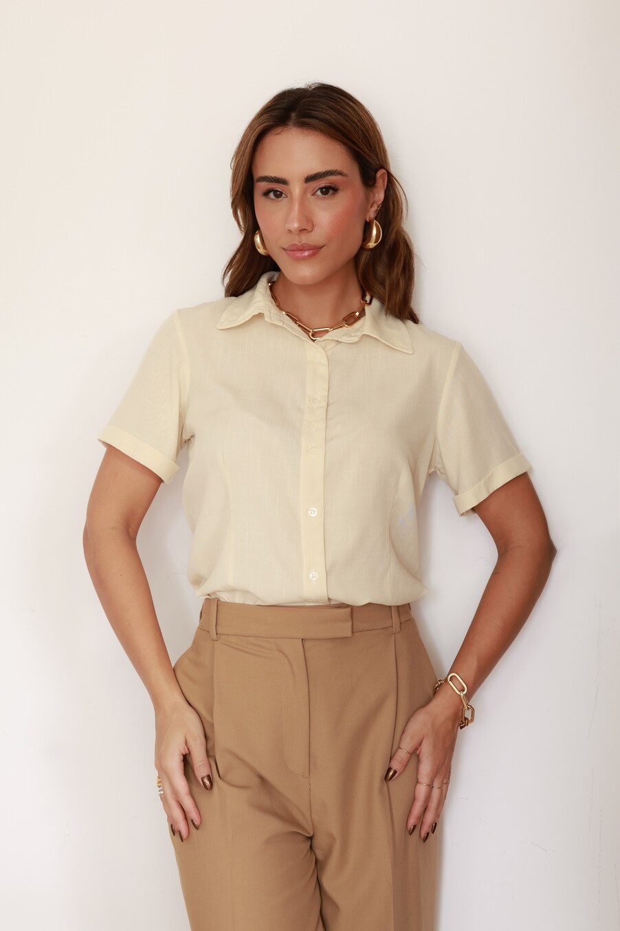 CAMISA SOCIAL FEMININA MANGA CURTA OFF WHITE