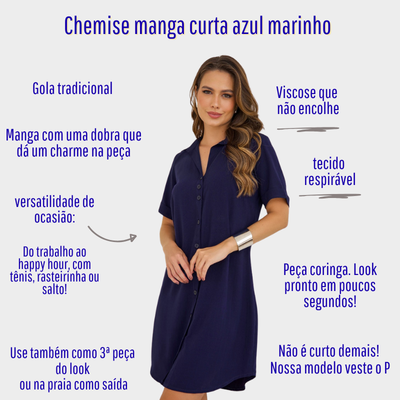 CHEMISE ABERTA MANGA CURTA AZUL MARINHO