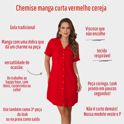 CHEMISE ABERTA MANGA CURTA CEREJA