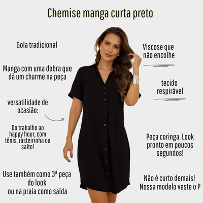 Versátil e elegante, nossa chemise aberta de manga curta em viscolinho é a escolha perfeita para qualquer ocasião. Feita de tecido leve e respirável, ela oferece conforto e estilo. Com botões frontais e disponível em várias cores e estampas, é ideal para looks casuais.