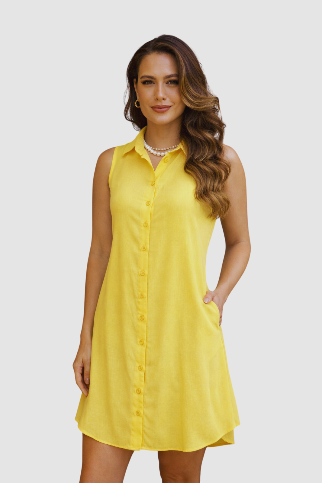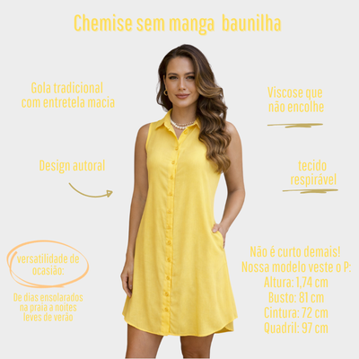 Nossa chemise sem mangas feita em viscolinho é a peça ideal para dias quentes. O viscolinho é um tecido leve e respirável, composto de viscose com aparência de linho, porém proporcionando frescor e conforto. A chemise tem um corte solto e fluido, caindo suavemente sobre o corpo. O design sem mangas permite maior liberdade de movimento e ventilação, enquanto a gola clássica e a abertura frontal com botões adicionam um toque elegante e versátil. Com bolsos laterais e entretelada, é ideal para um look casual e sofisticado em dias de calor.