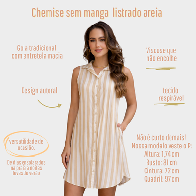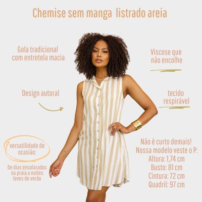 Nossa chemise sem mangas feita em viscolinho é a peça ideal para dias quentes. O viscolinho é um tecido leve e respirável, composto de viscose com aparência de linho, porém proporcionando frescor e conforto. A chemise tem um corte solto e fluido, caindo suavemente sobre o corpo. O design sem mangas permite maior liberdade de movimento e ventilação, enquanto a gola clássica e a abertura frontal com botões adicionam um toque elegante e versátil. Com bolsos laterais e entretelada, é ideal para um look casual e sofisticado em dias de calor.