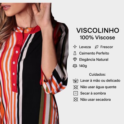 Feita em tecido leve e confortável, é uma peça atemporal, que transita com facilidade do trabalho ao lazer, mantendo sempre a essência da Ícone: vestir mulheres com personalidade e sofisticação natural.