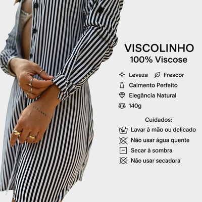O Chemise Moda Praia é a peça perfeita para quem busca estilo e conforto nos dias ensolarados. Confeccionado em viscolinho leve e fresco, ele garante um caimento solto e agradável, ideal para os momentos à beira-mar ou para um passeio casual.