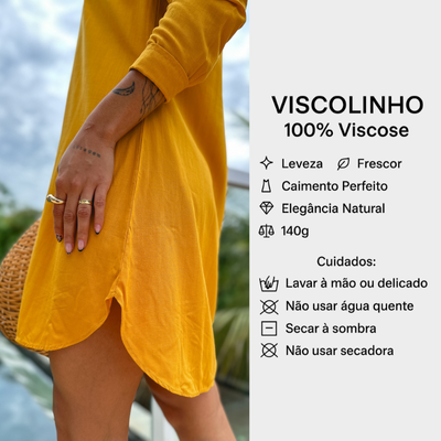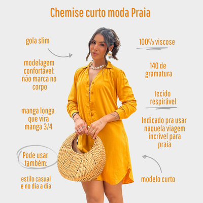 A manga com opção de dobra adiciona um toque moderno e prático, permitindo diferentes formas de uso conforme a ocasião. Versátil e elegante, o chemise transita facilmente da praia ao dia a dia, podendo ser usado como saída de praia ou como vestido leve com sandálias ou rasteirinhas.