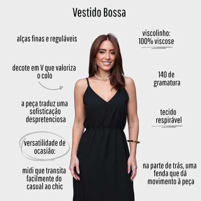 Com leveza e charme na medida certa, o Vestido midi Bossa é perfeito para quem busca um visual descomplicado, mas com personalidade. Com estampas exclusivas traz movimento e brasilidade à peça, enquanto o decote em V e a cintura marcada valorizam a silhueta com delicadeza. O comprimento midi e o caimento suave fazem dele o companheiro ideal para almoços especiais, jantares à beira-mar ou momentos de lazer com estilo. Um vestido leve, versátil e com alma como a mulher que o veste.