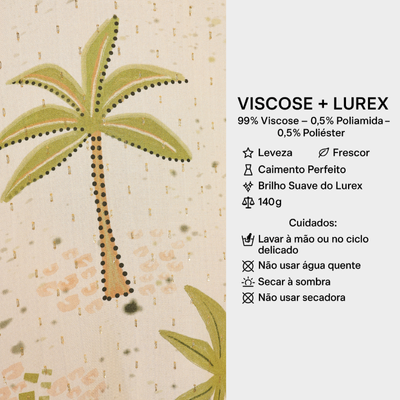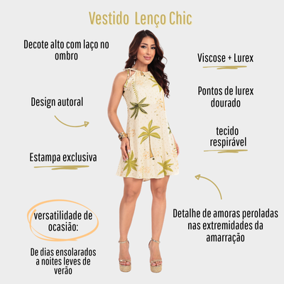 Com recorte inspirado no caimento leve dos lenços, o Vestido Lenço Chic traz uma elegância sutil que se destaca. Na estampa Cocais que é a cara do verão 2026 ele ainda tem um plus das gotas de lurex que trazem um brilho a mais no look.