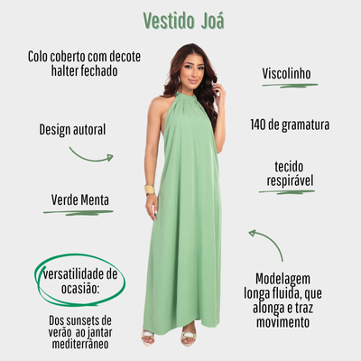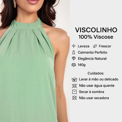 Com caimento fluido e decote halter que valoriza os ombros com delicadeza, ele une sofisticação e frescor em uma peça só.