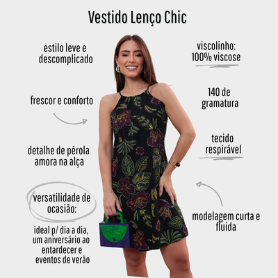 Com recorte inspirado no caimento leve dos lenços, o Vestido Lenço Chic traz uma elegância sutil que se destaca.