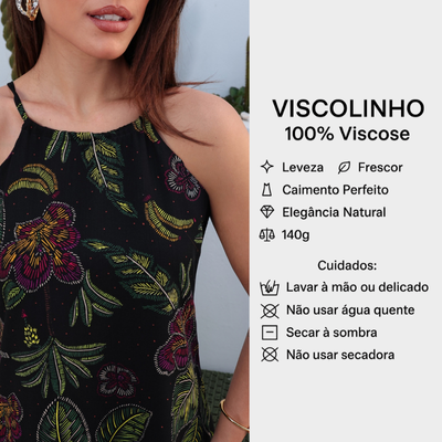 O decote halter valoriza os ombros, enquanto a modelagem soltinha e o comprimento curto garantem leveza e sofisticação em cada movimento. Ideal para dias de sol, encontros especiais ou noites de verão, ele é aquele tipo de peça que combina charme natural com presença marcante.