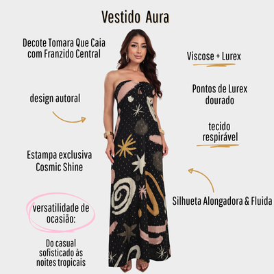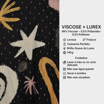 Nosso tomara que caia traz uma estampa autoral de presença, criada para quem gosta de peças que se destacam sem esforço. O desenho único ganha ainda mais vida com gotas de lurex, que iluminam a superfície com um brilho sofisticado e elegante. A modelagem realça o colo com naturalidade, oferecendo ótimo caimento e conforto, perfeito para composições modernas e cheias de personalidade.