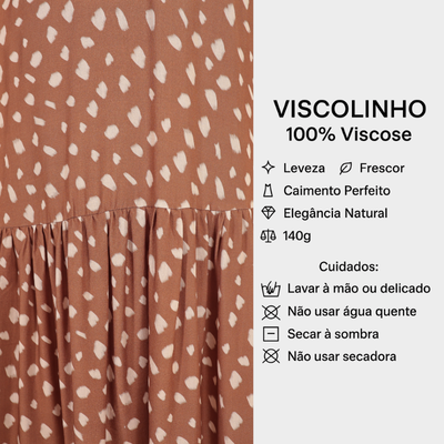 Se existe um vestido que traduz o verão em forma de roupa, é o VERANO. Ele combina leveza e a estética tropical-elegante que é a assinatura da nossa marca! Para as amantes do toque natural, o caimento fluido da viscose dá vida as estampas exclusivas tropicais, sofisticadas e marcantes na medida certa. Para dias quentes, passeios, viagens, almoços, finais de semana e todos os momentos do verão em que você busca conforto com estilo.